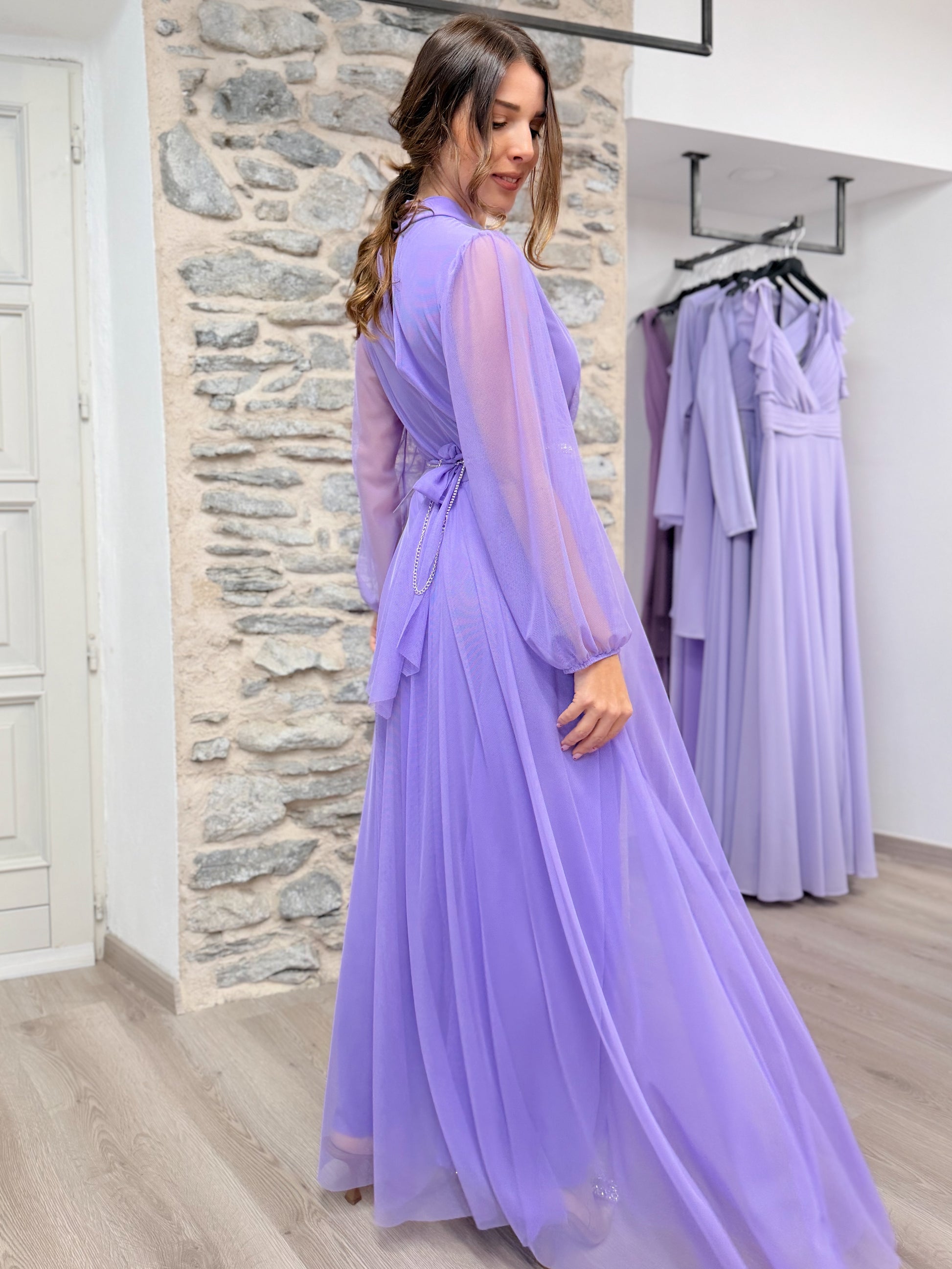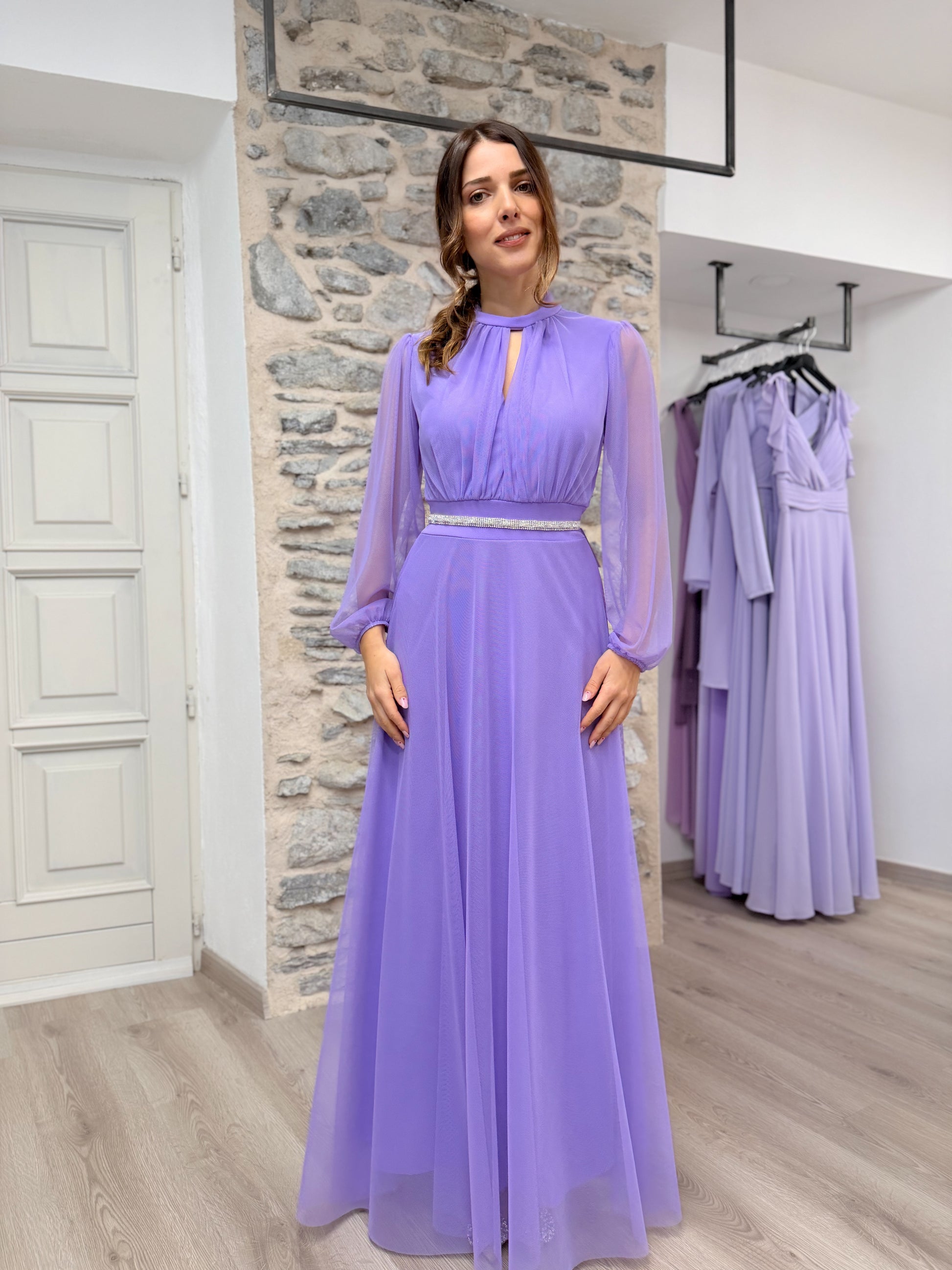 Manica lunga, accollato e con bottone sul retro di chiusura