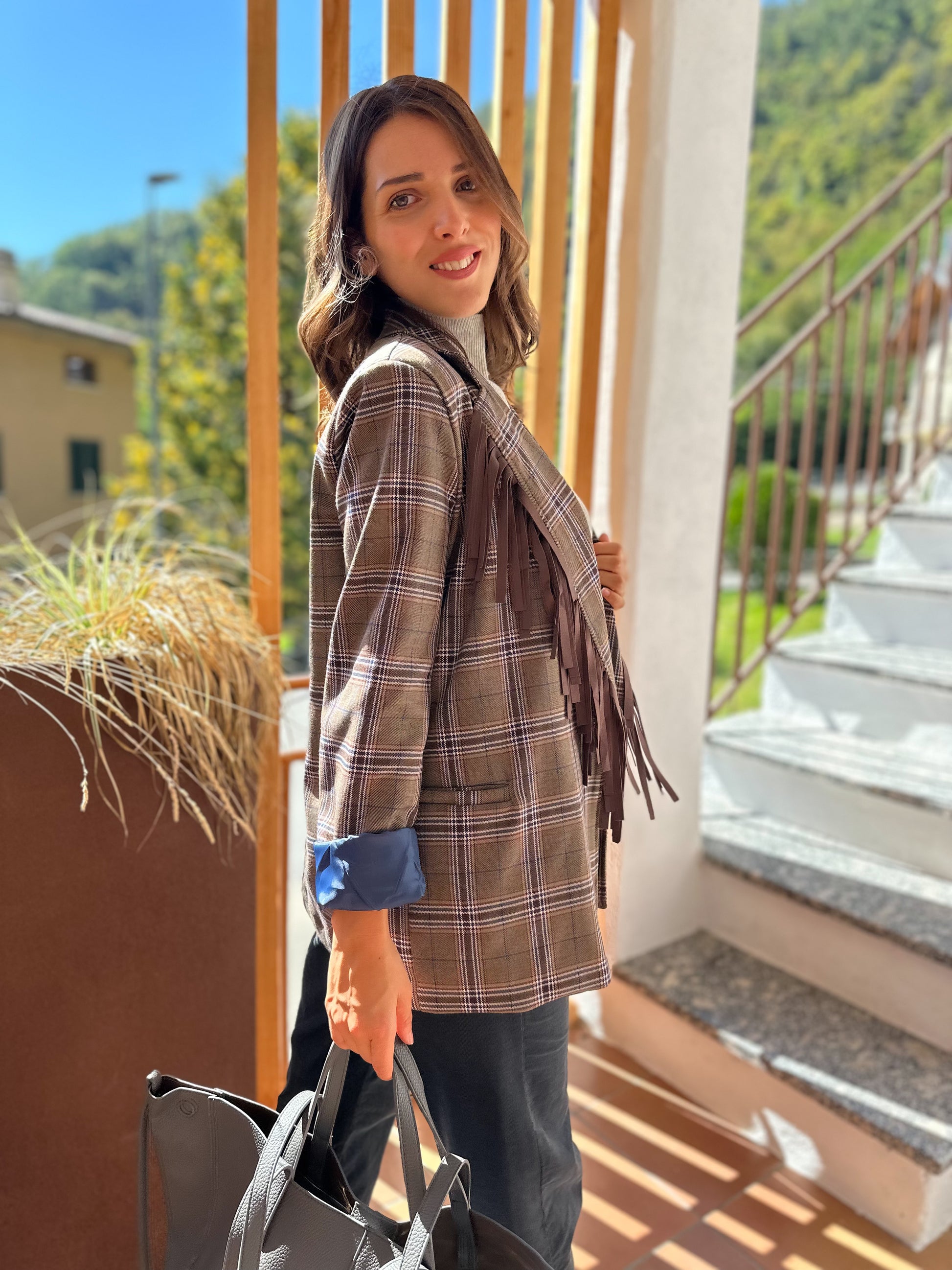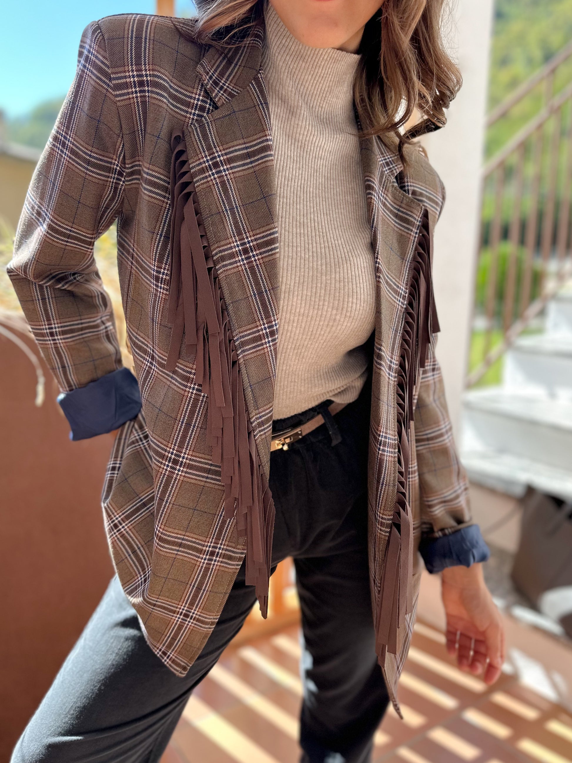 Blazer scozzese sui toni del: marrone, blue e bordeaux