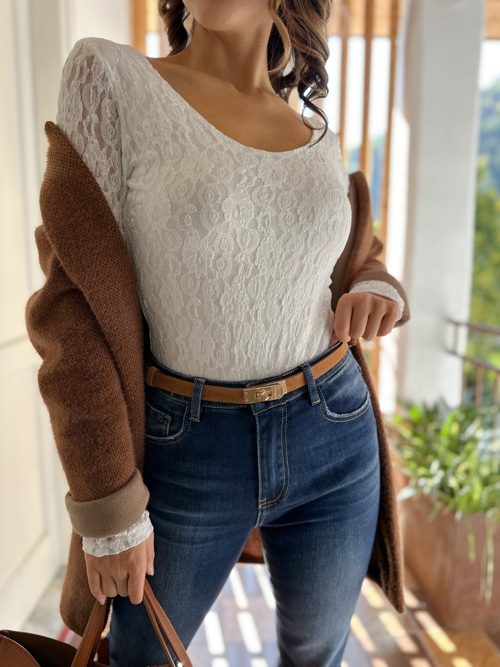 Body in pizzo foderato davanti e dietro. Gancini regolabili