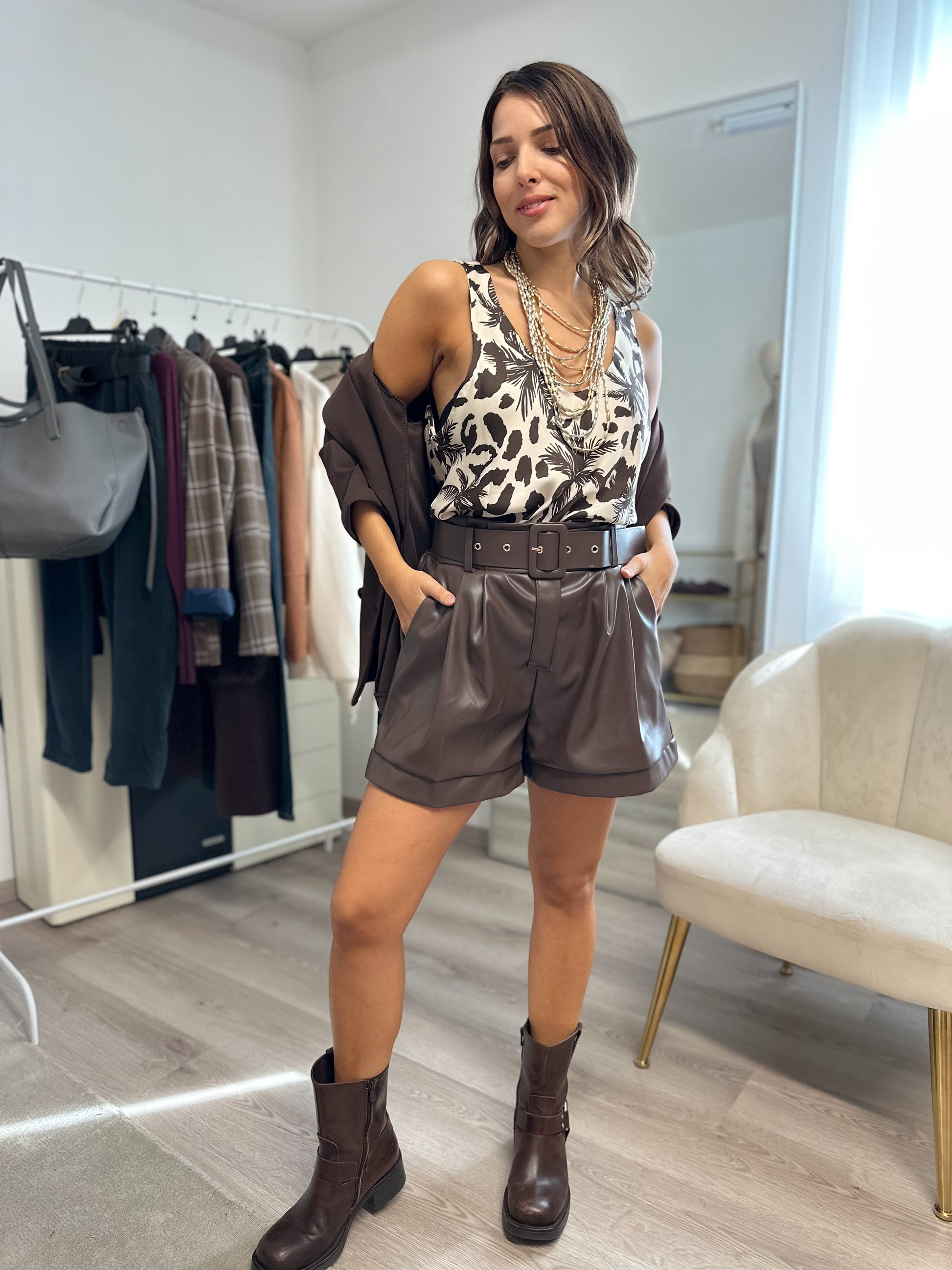 Canotta over in fantasia con scollo davanti e dietro. Spallina larga. 100% viscosa
