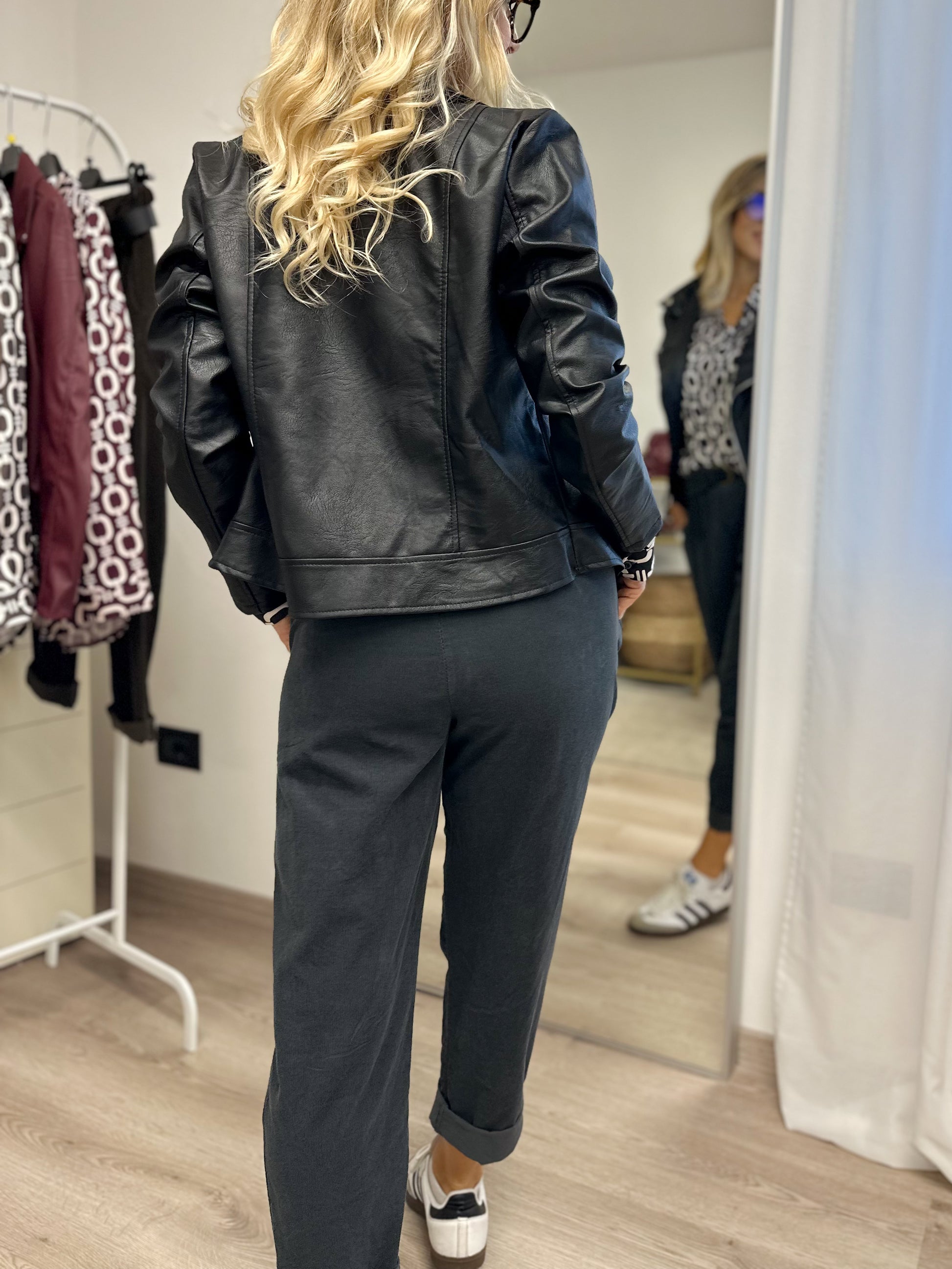 Chiodo in ecopelle con zip laterale.