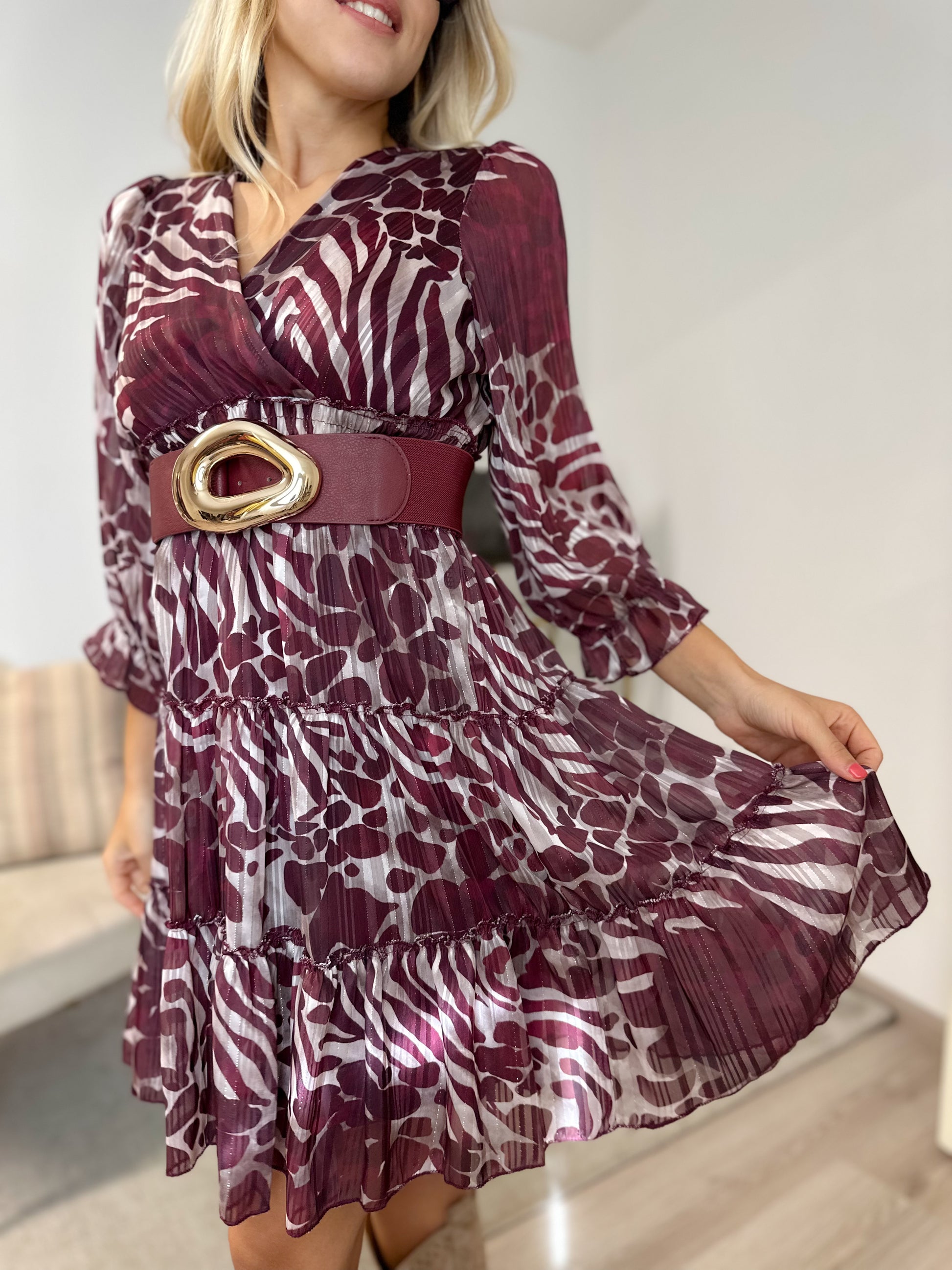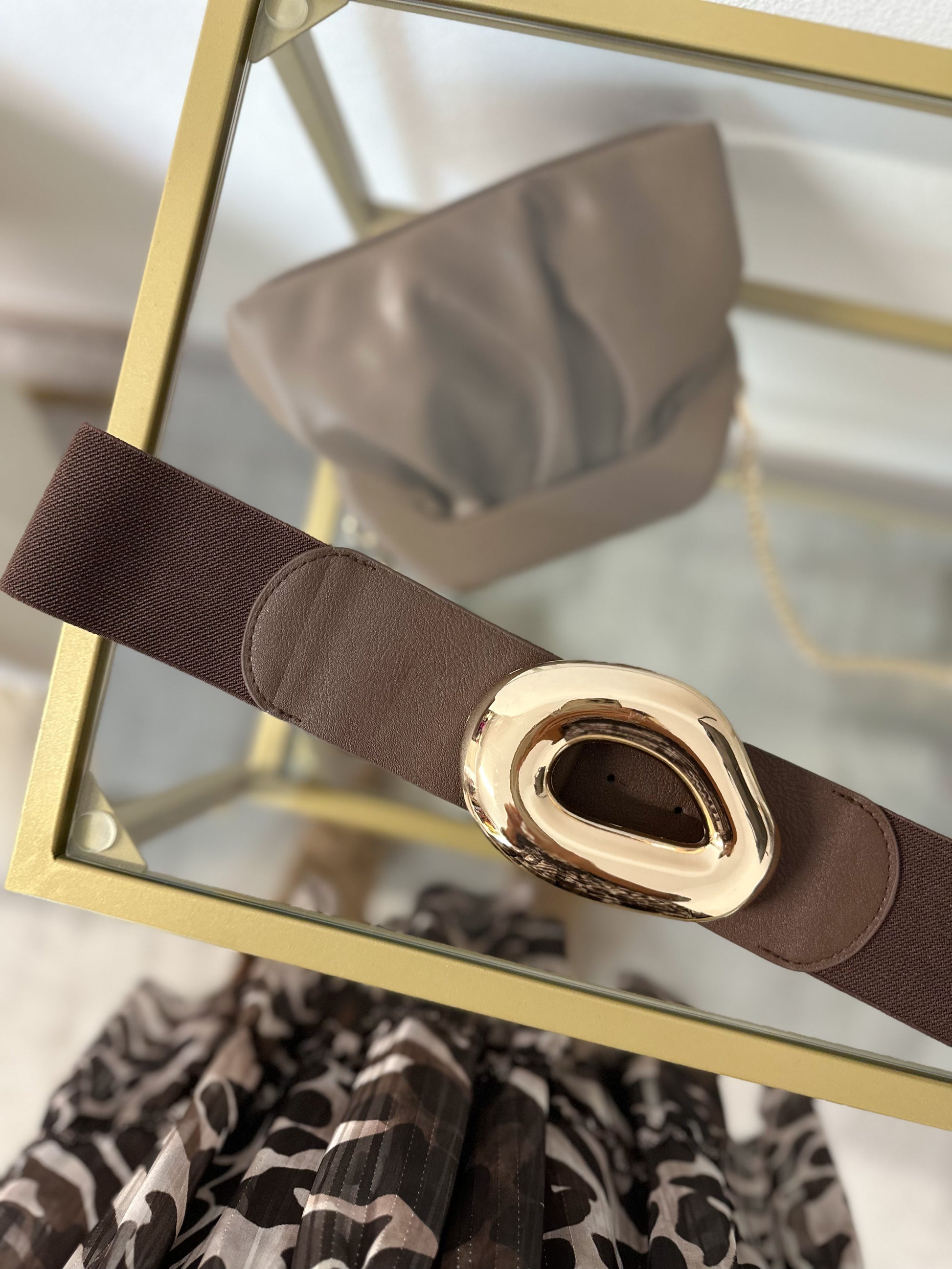 Cintura elasticizzata placata oro, regolabile.