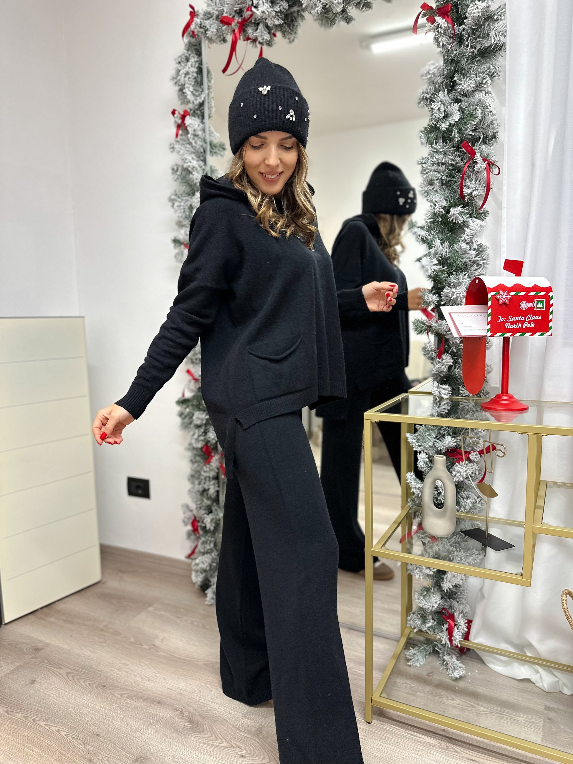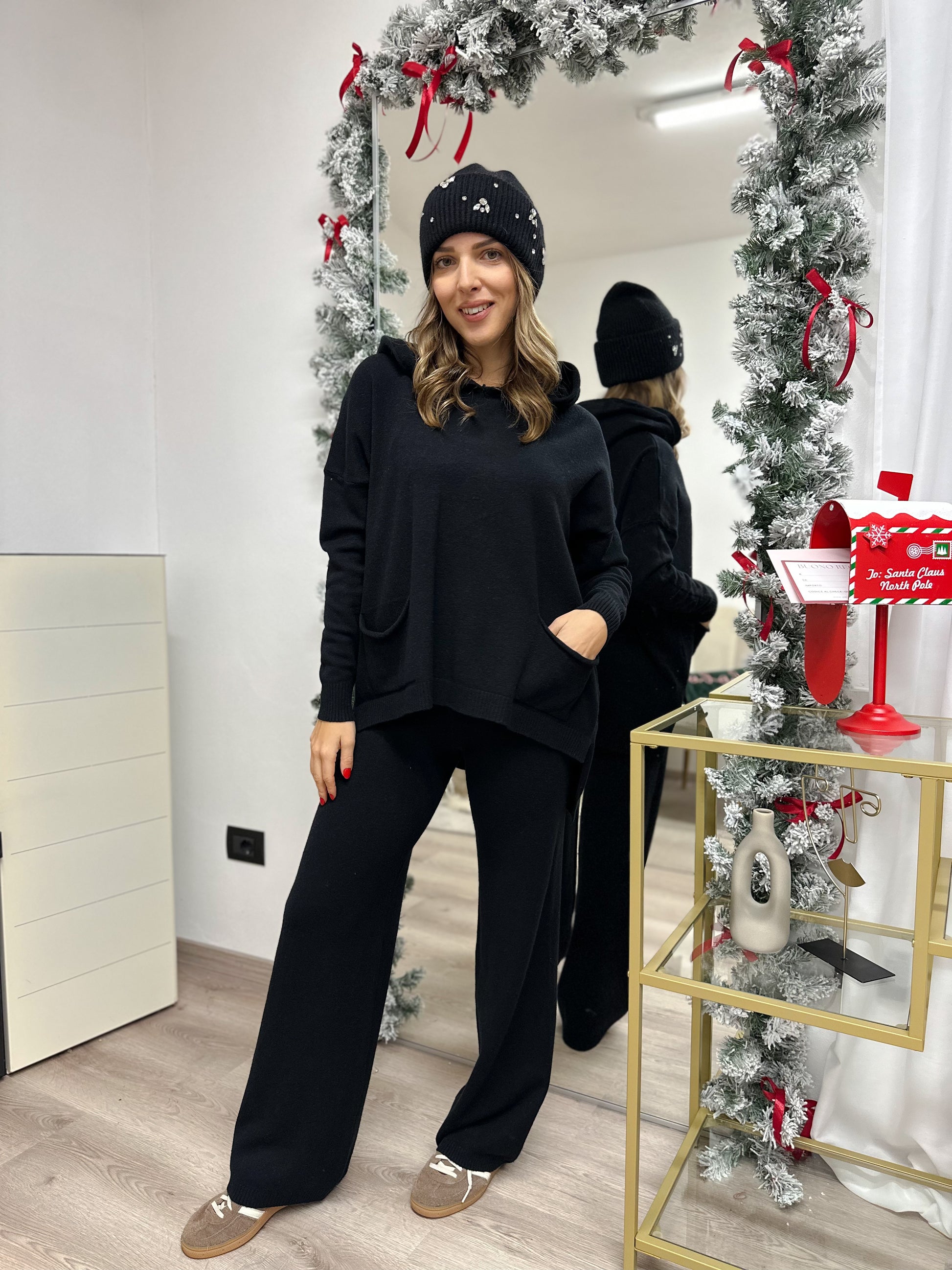 dalla Felpa in maglia con cappuccio piu corta davanti e più lunga dietro e taschine davanti