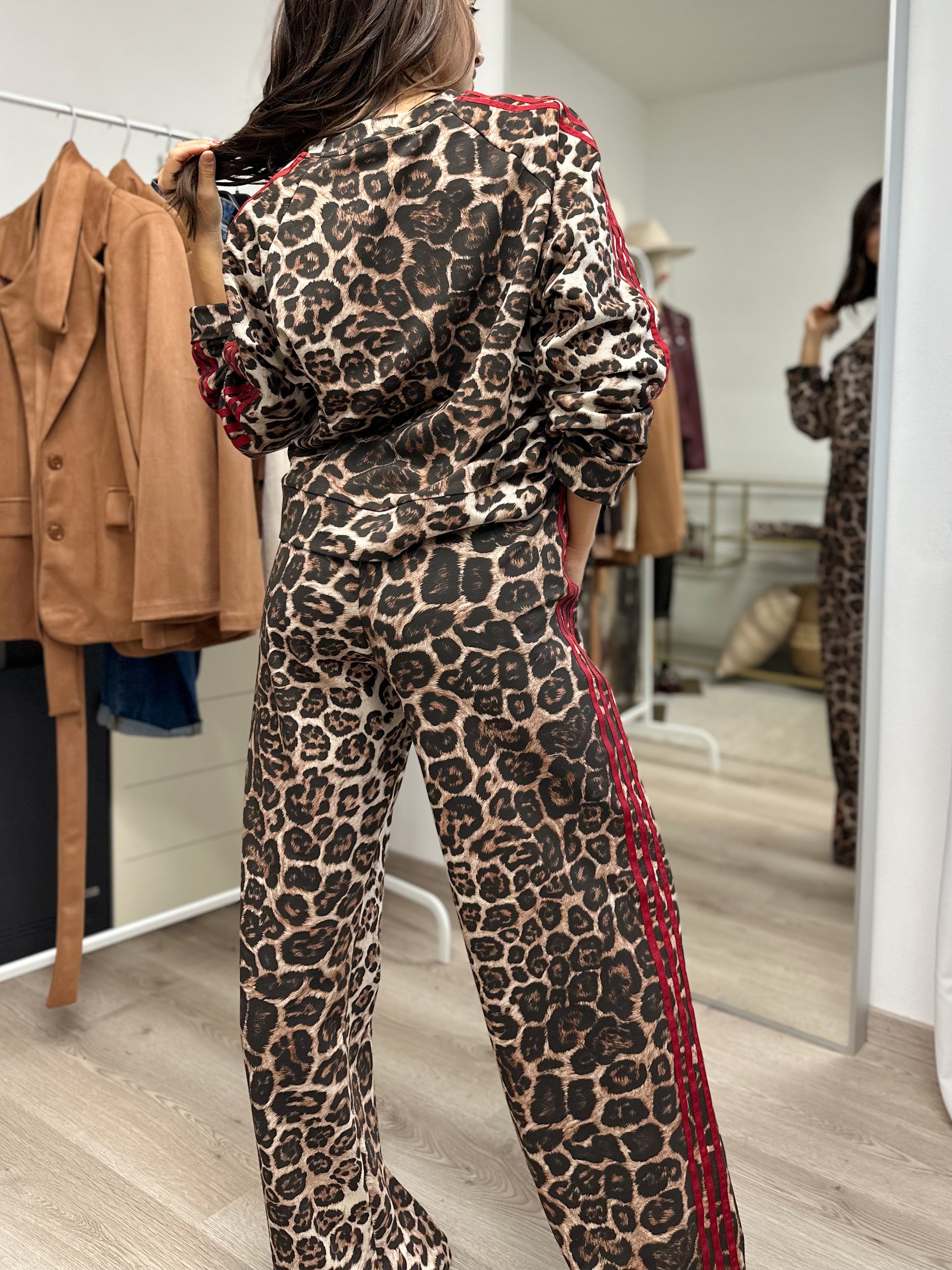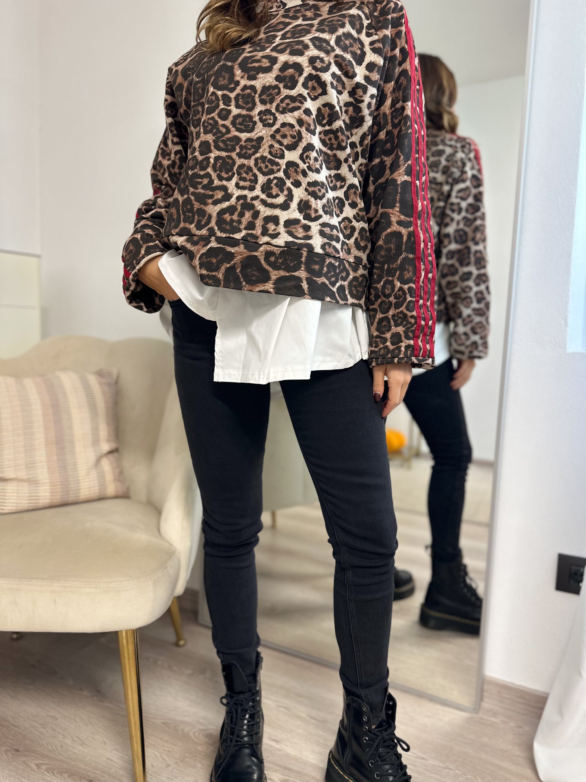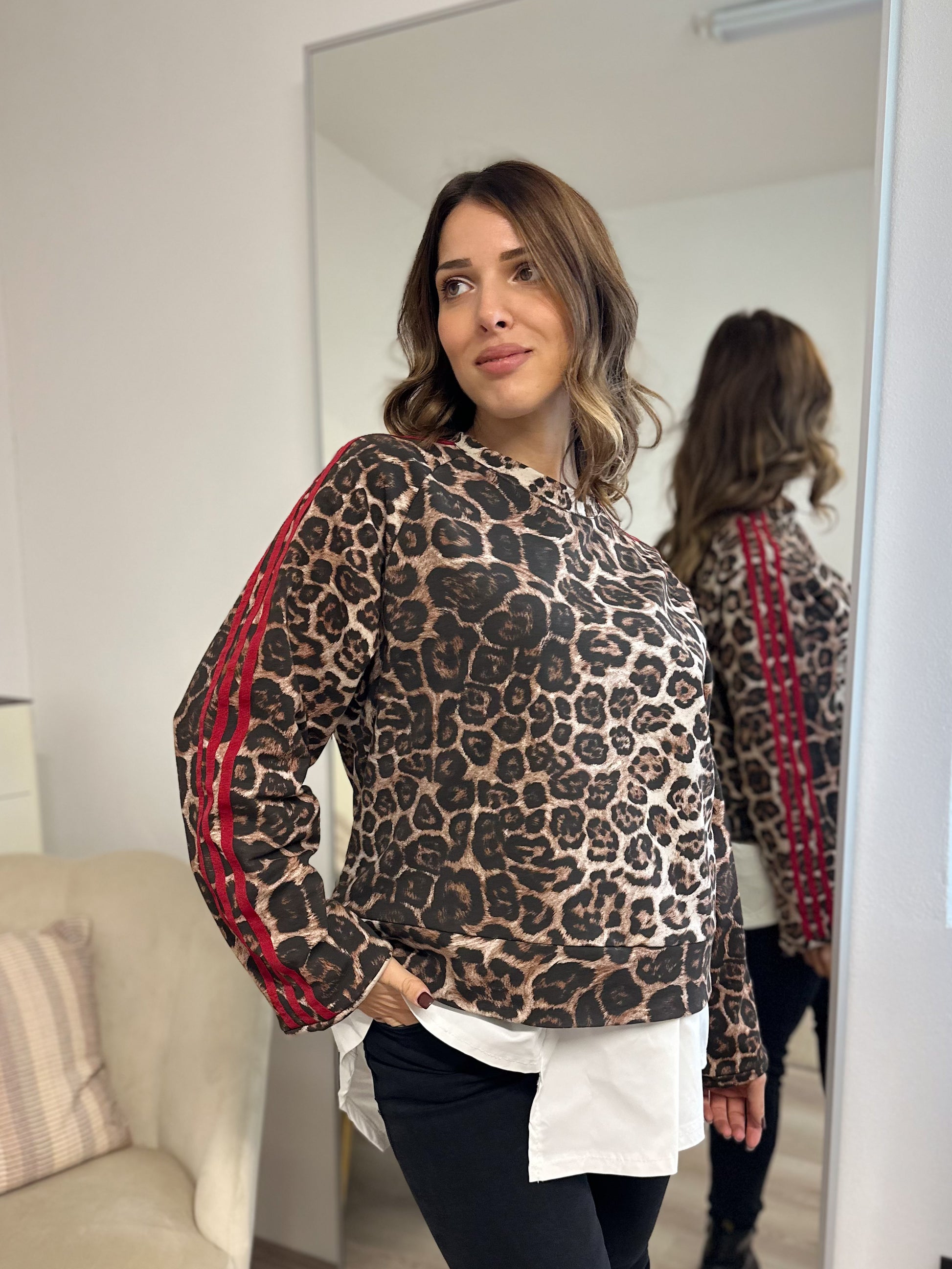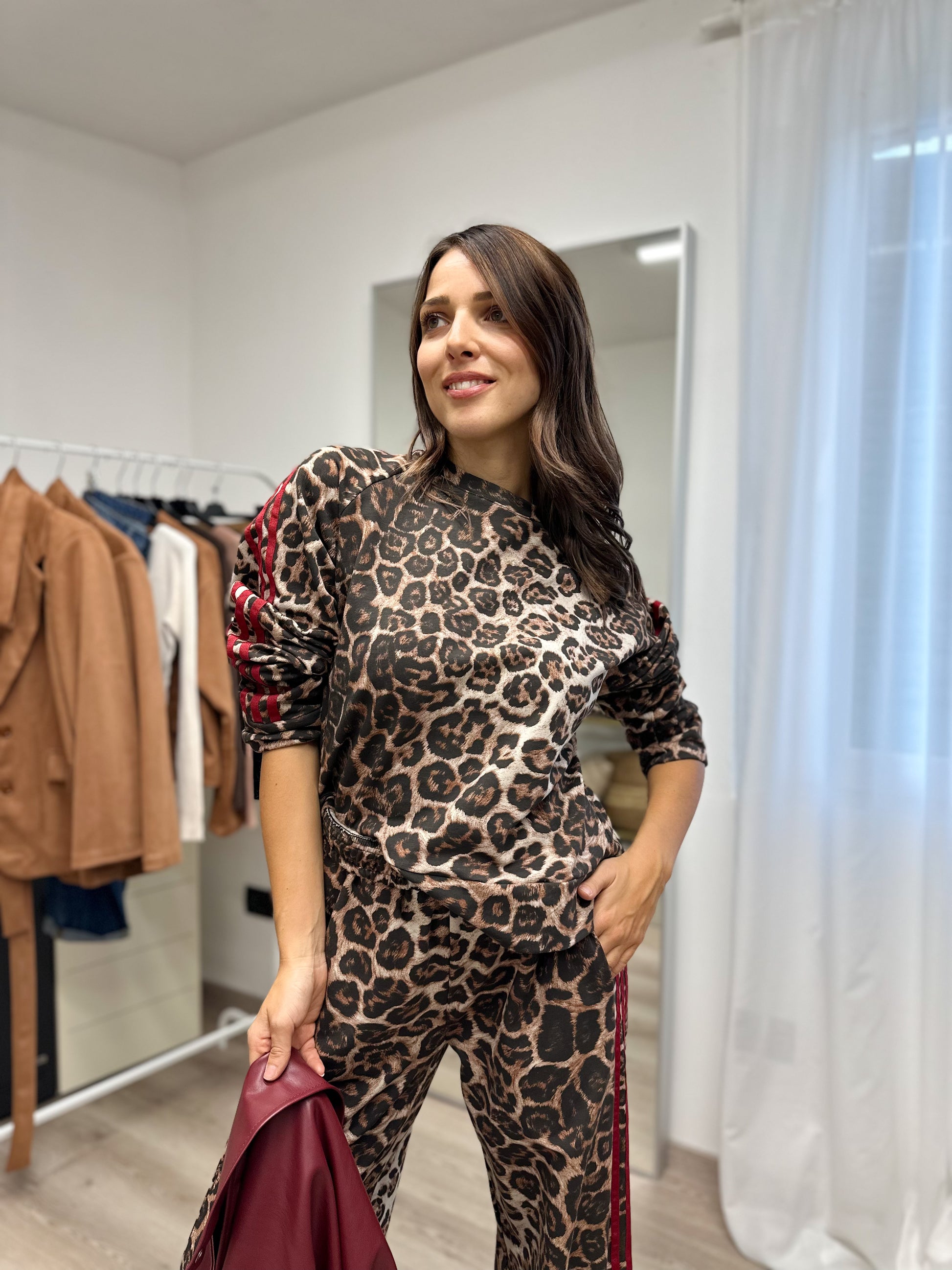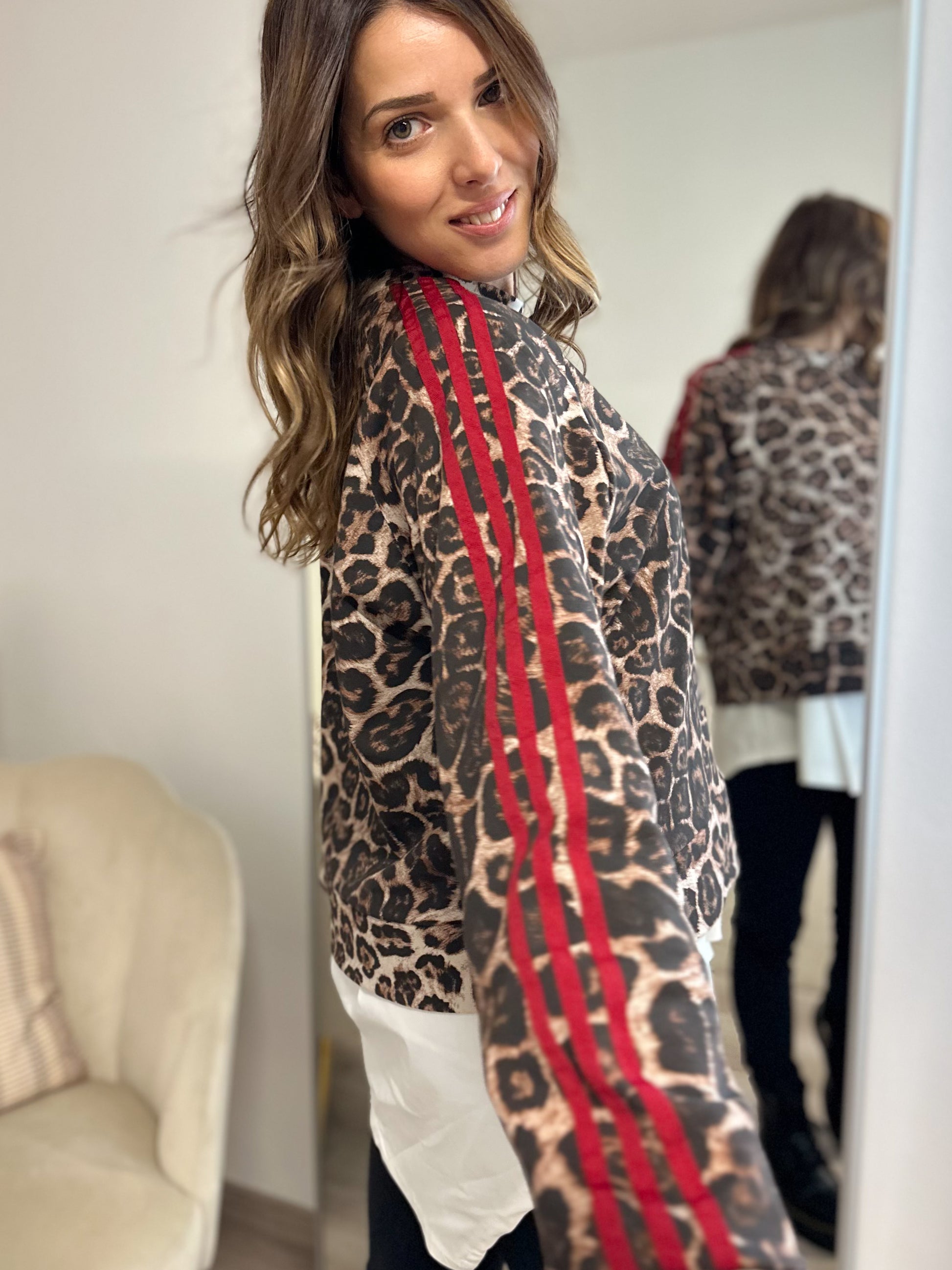 Felpa maculata in tessuto garzato con bande laterali rosse