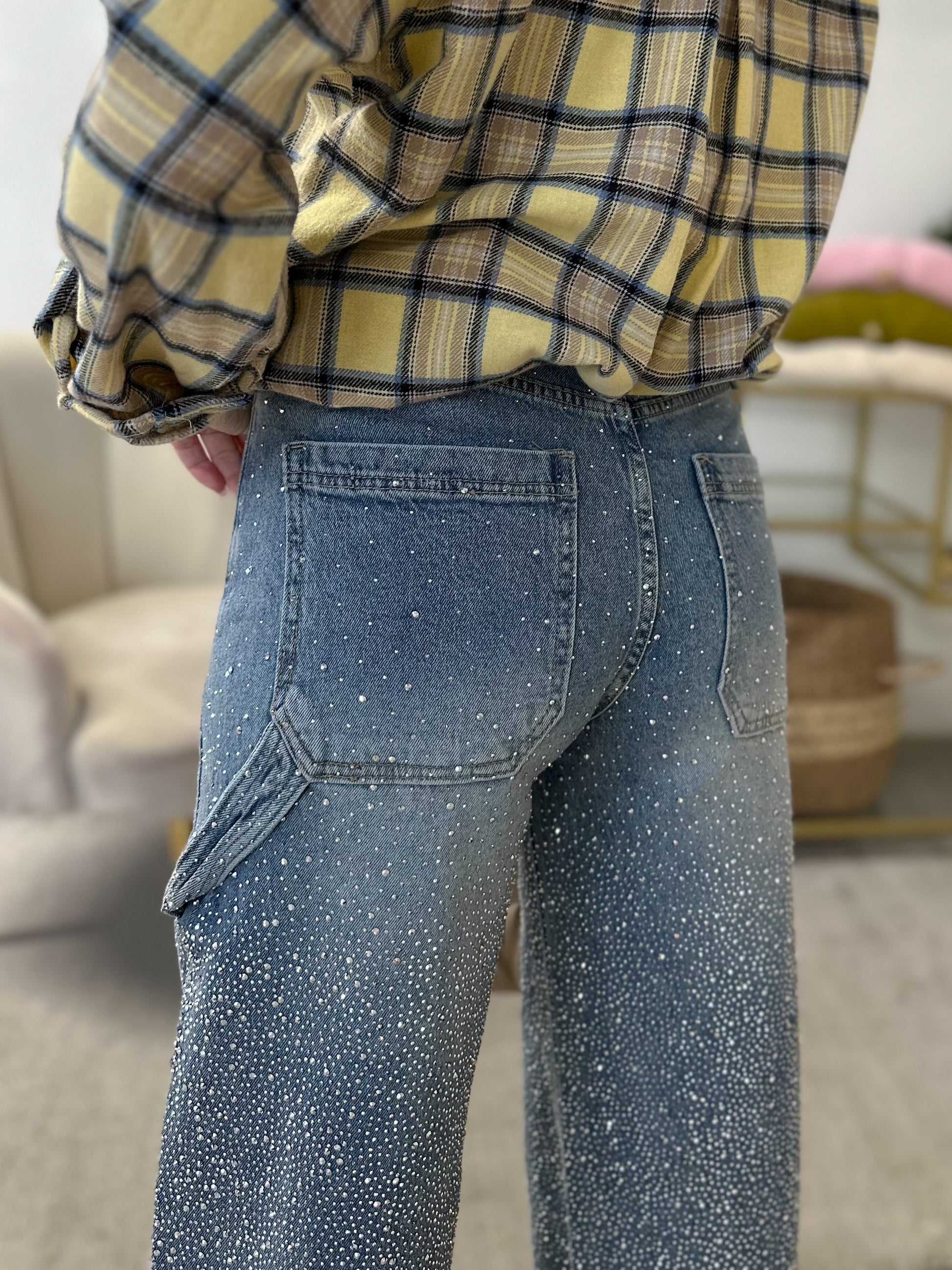 Jeans balloon elasticizzato con strass