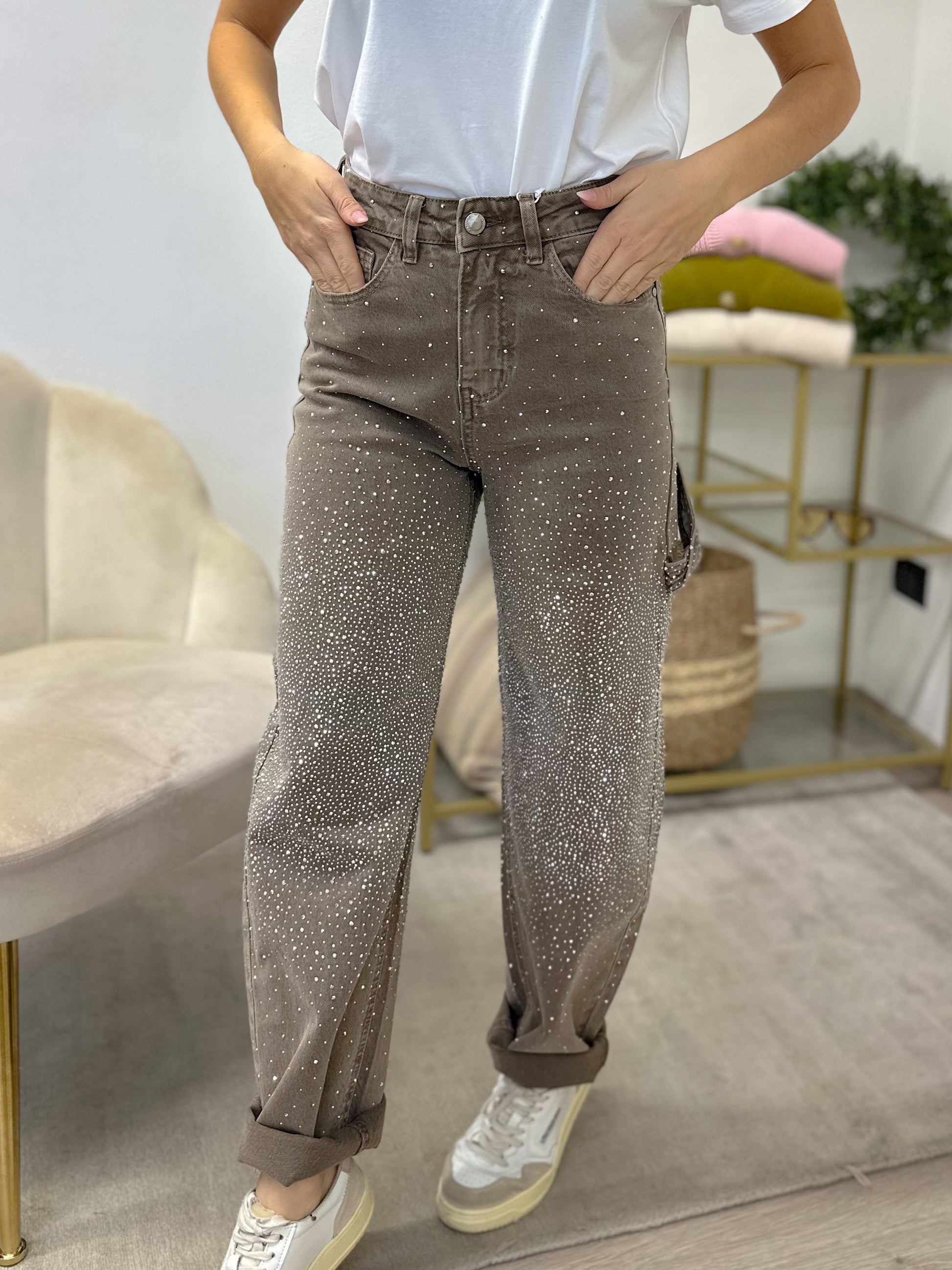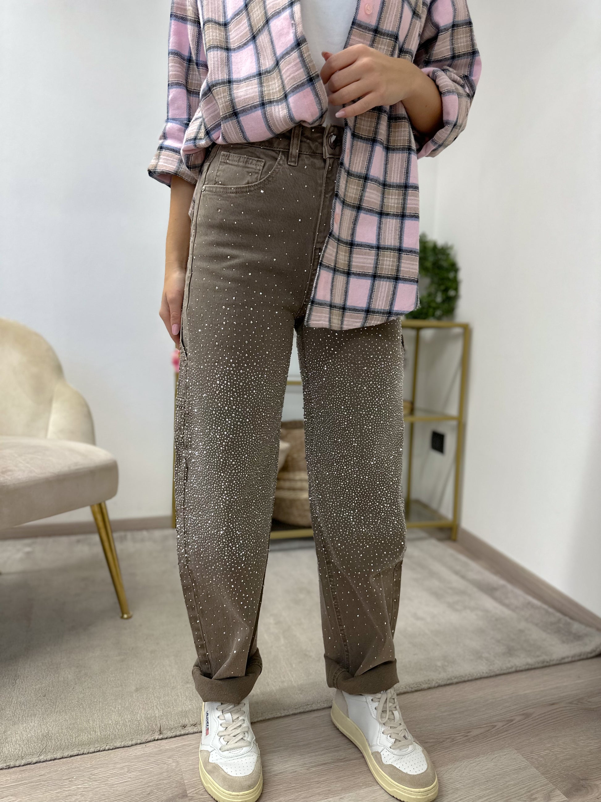 Jeans balloon elasticizzato con strass