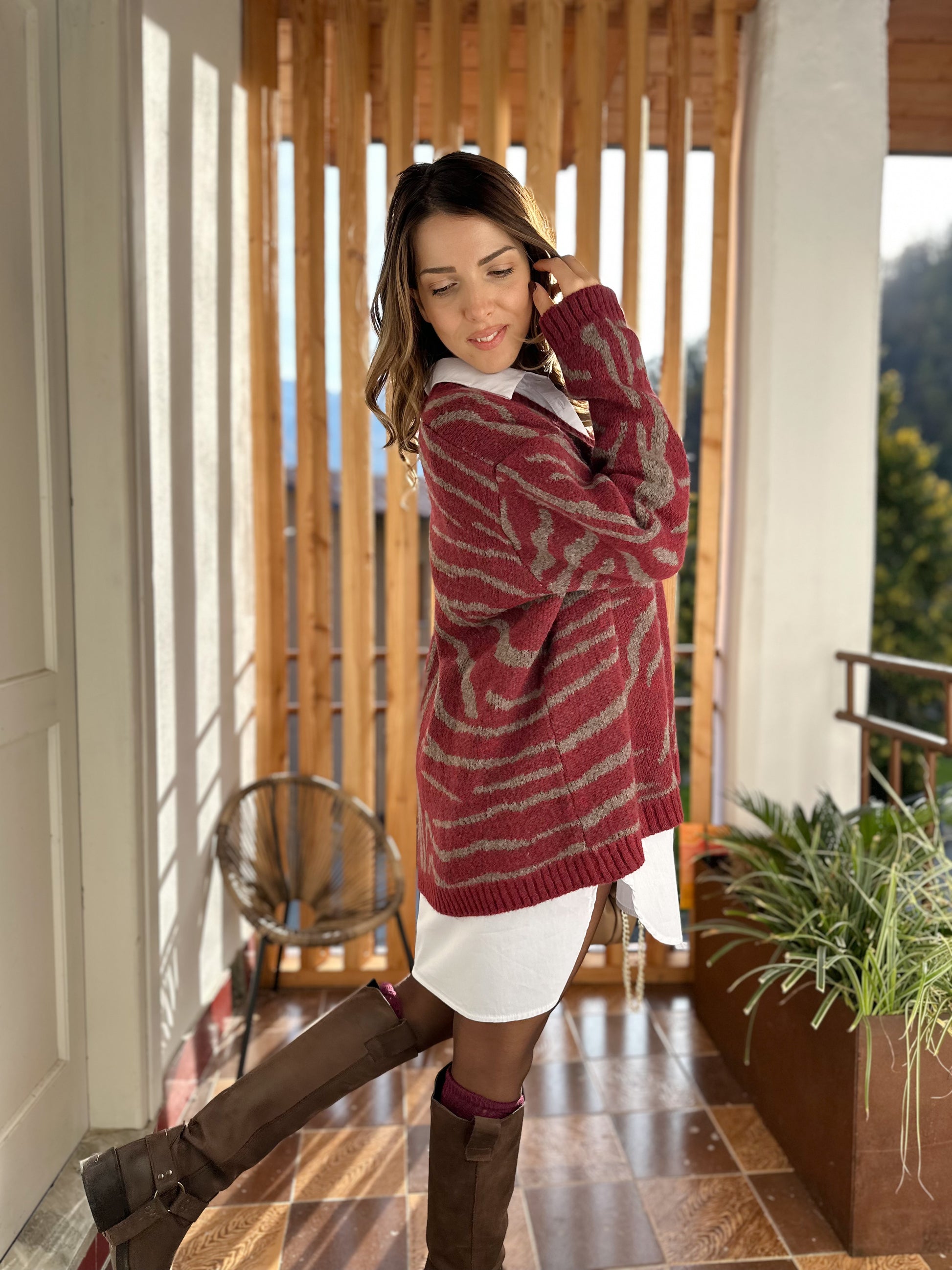 Pull Oversize con Scollo a V in Fantasia Zebrata.