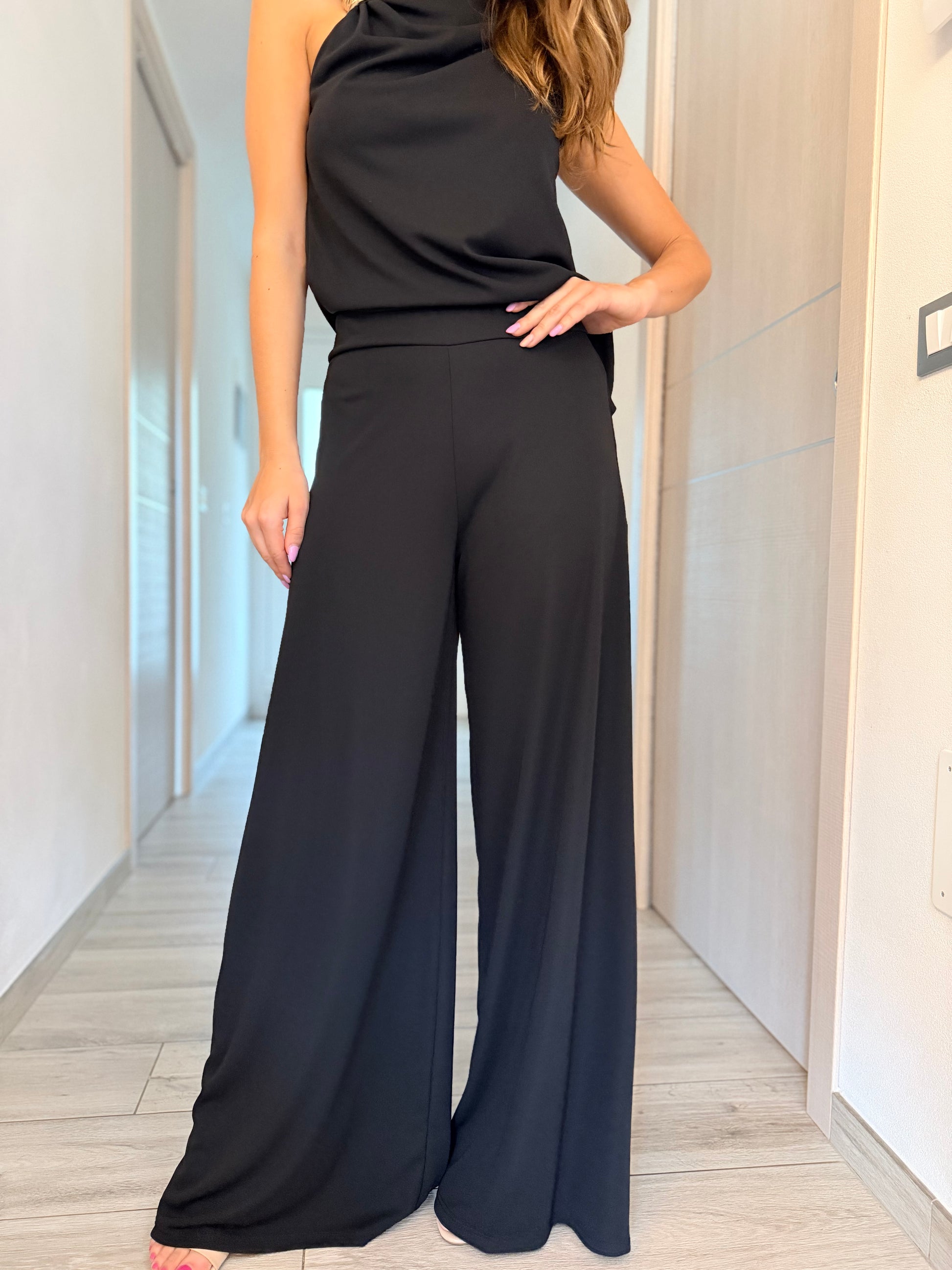Tessuto stretch. Palazzo. Fascione alto in vita.