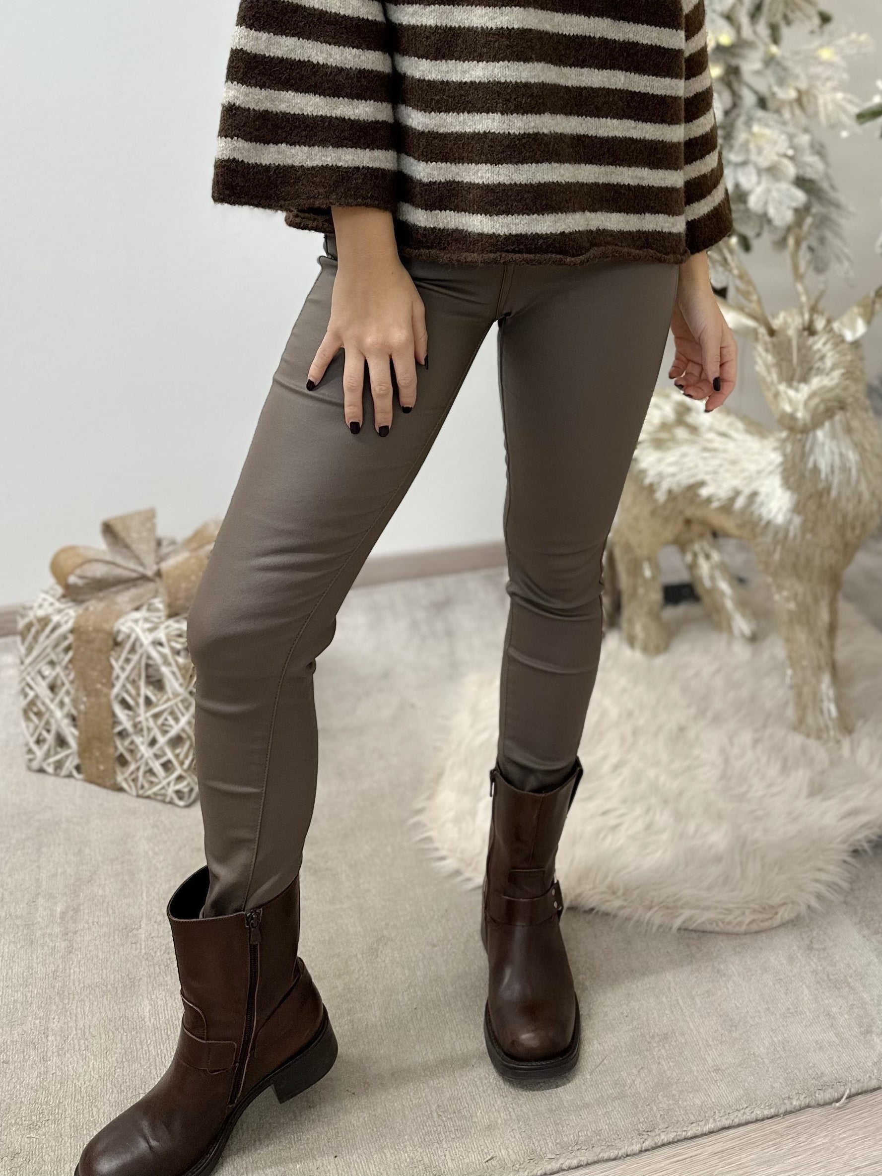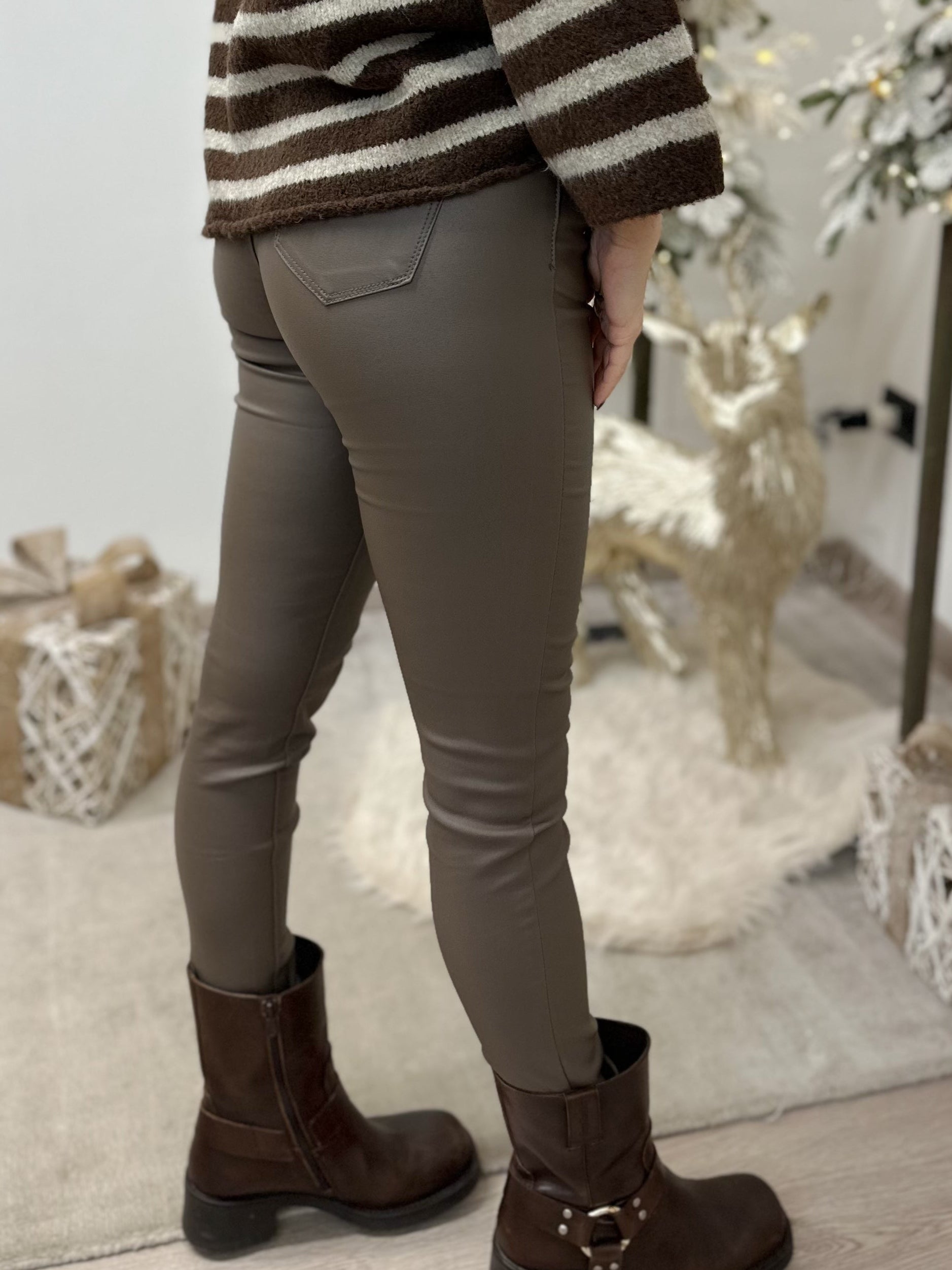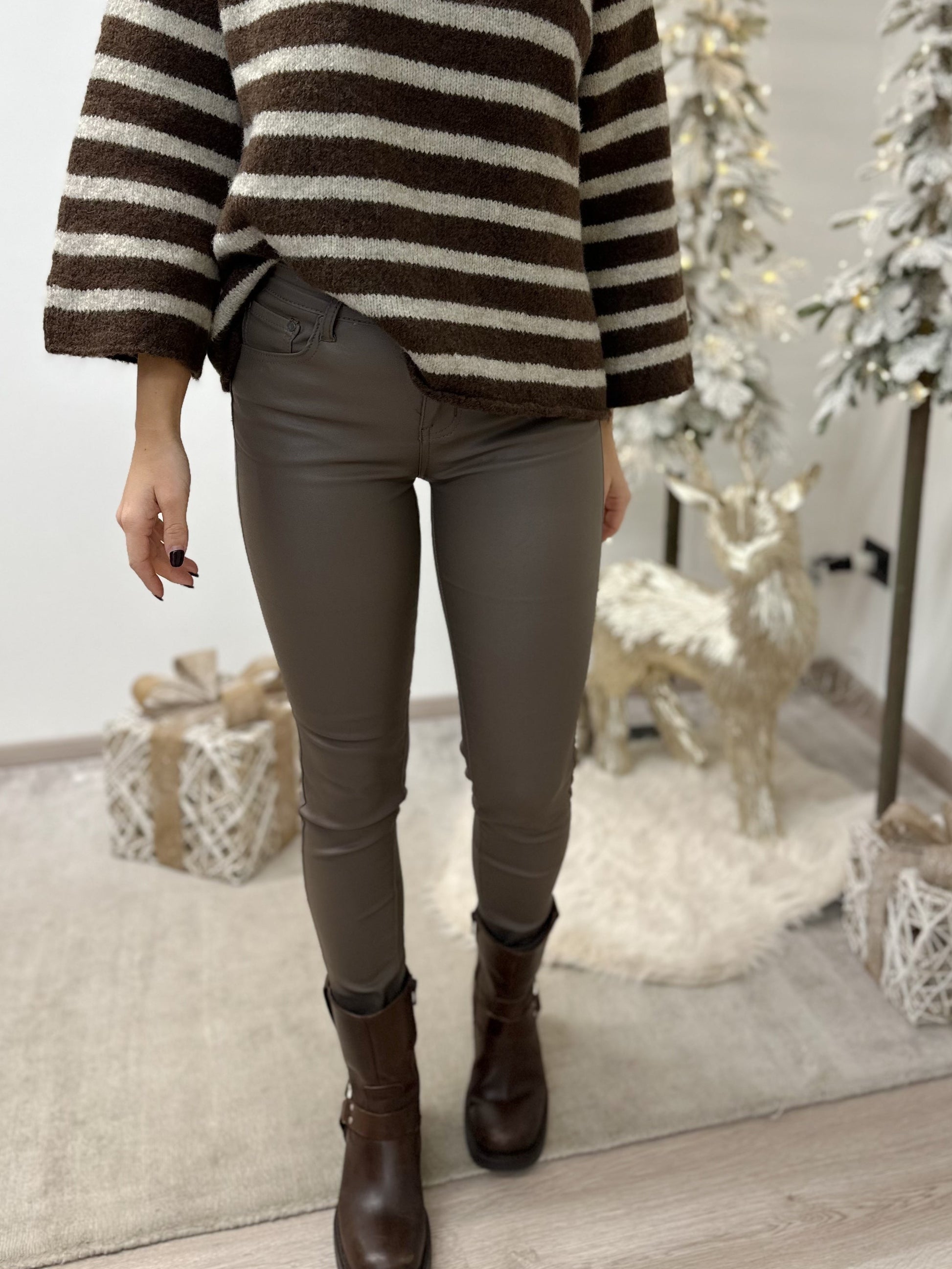 - Pantalone skinny in ecopelle con tasche laterali e sul retro
