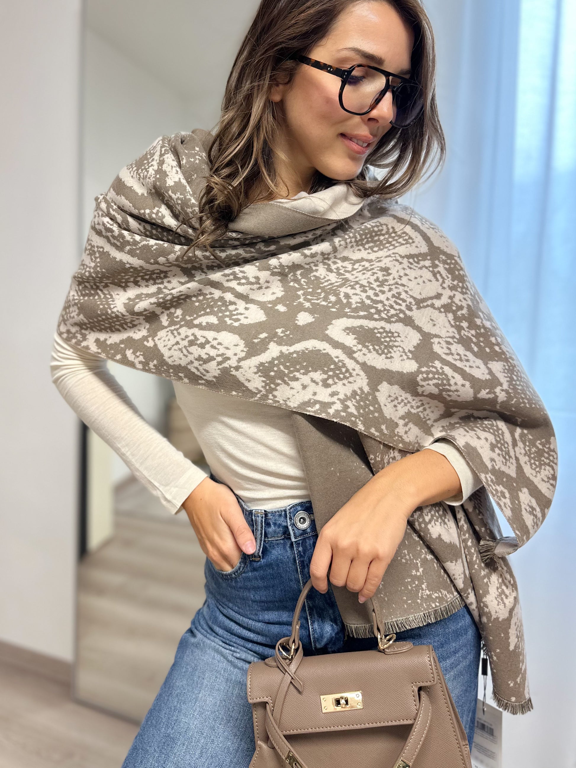 Sciarpa super calda Double face lato chiaro lato scuro con frange sul fondo