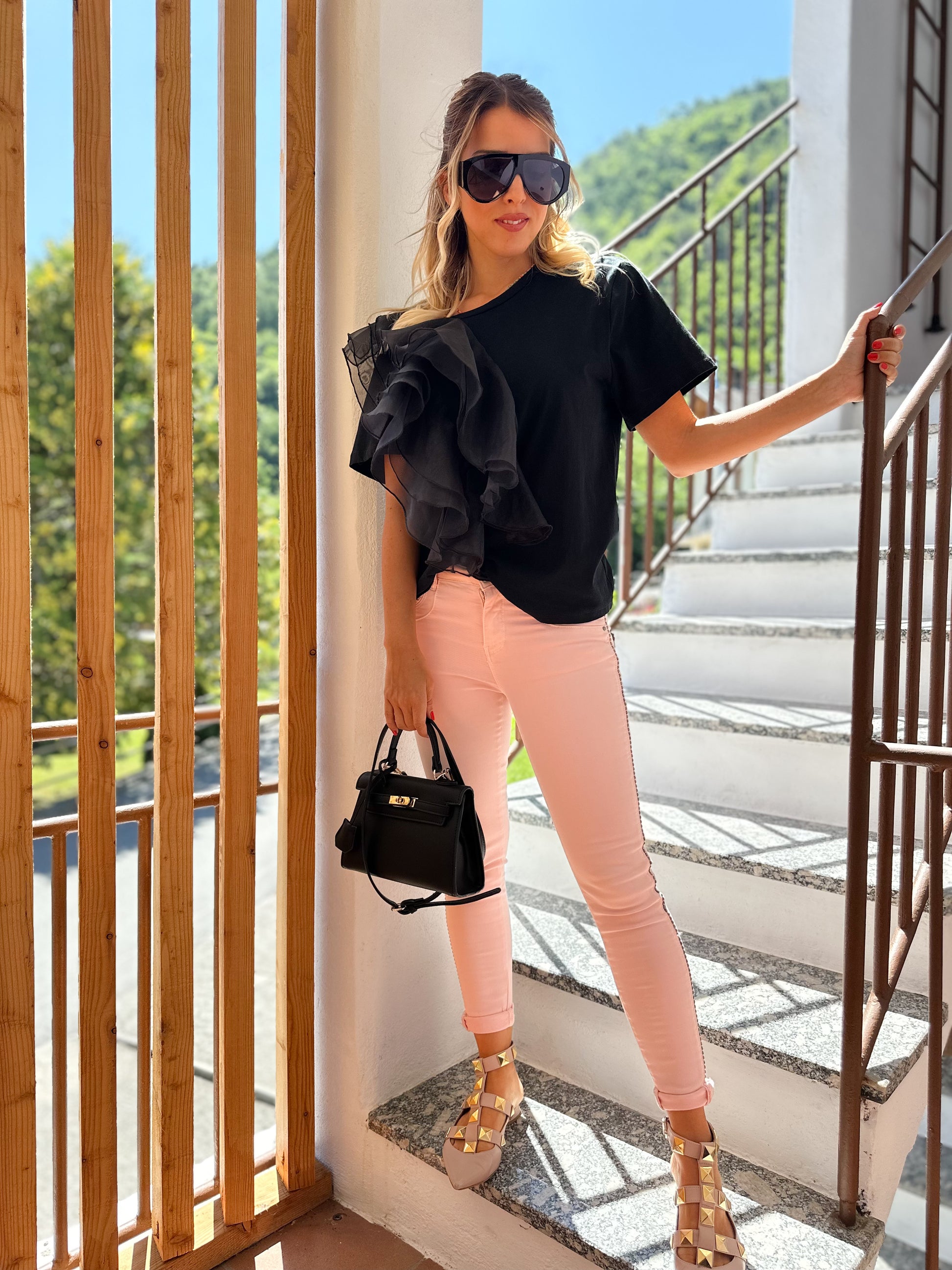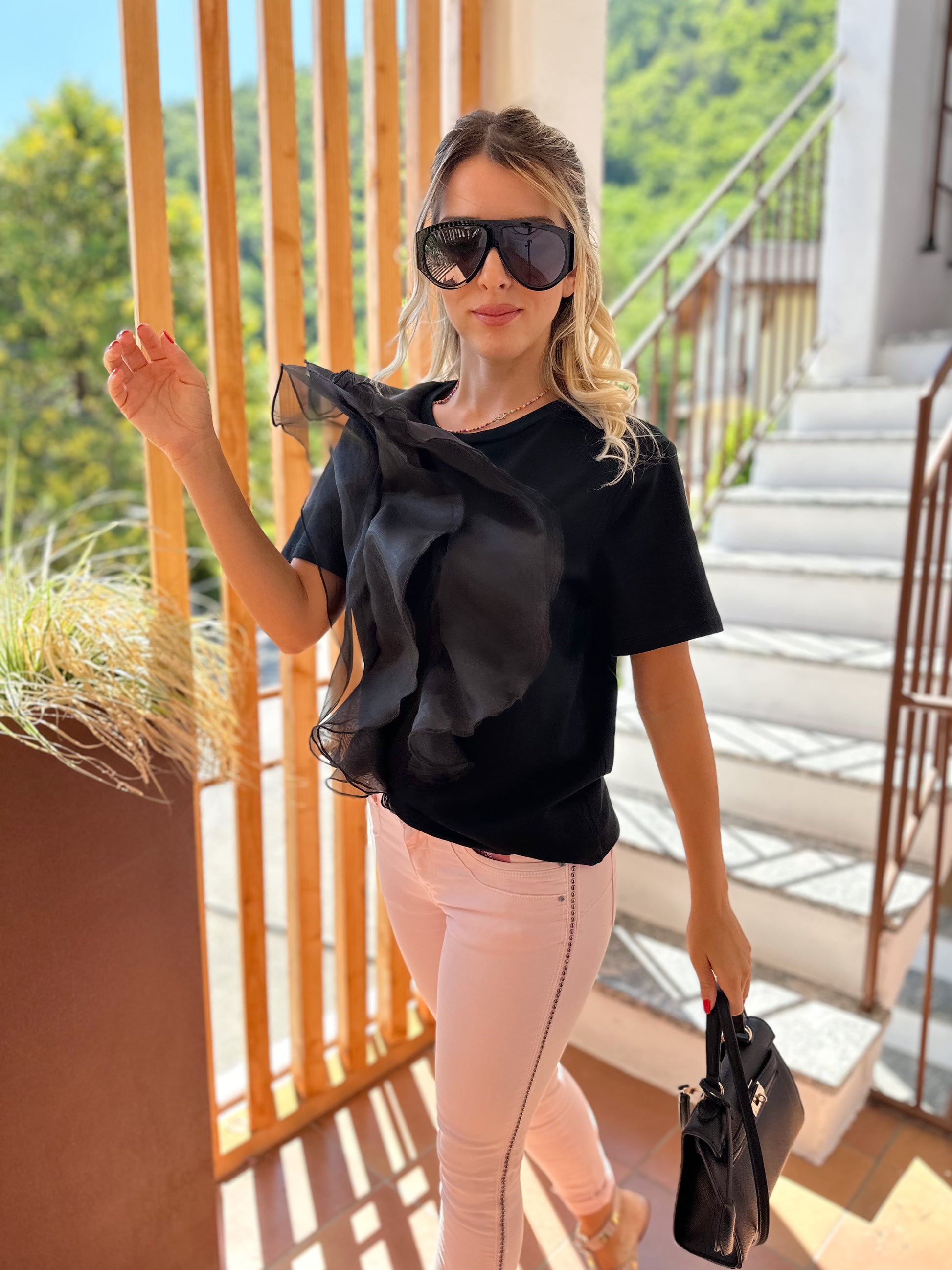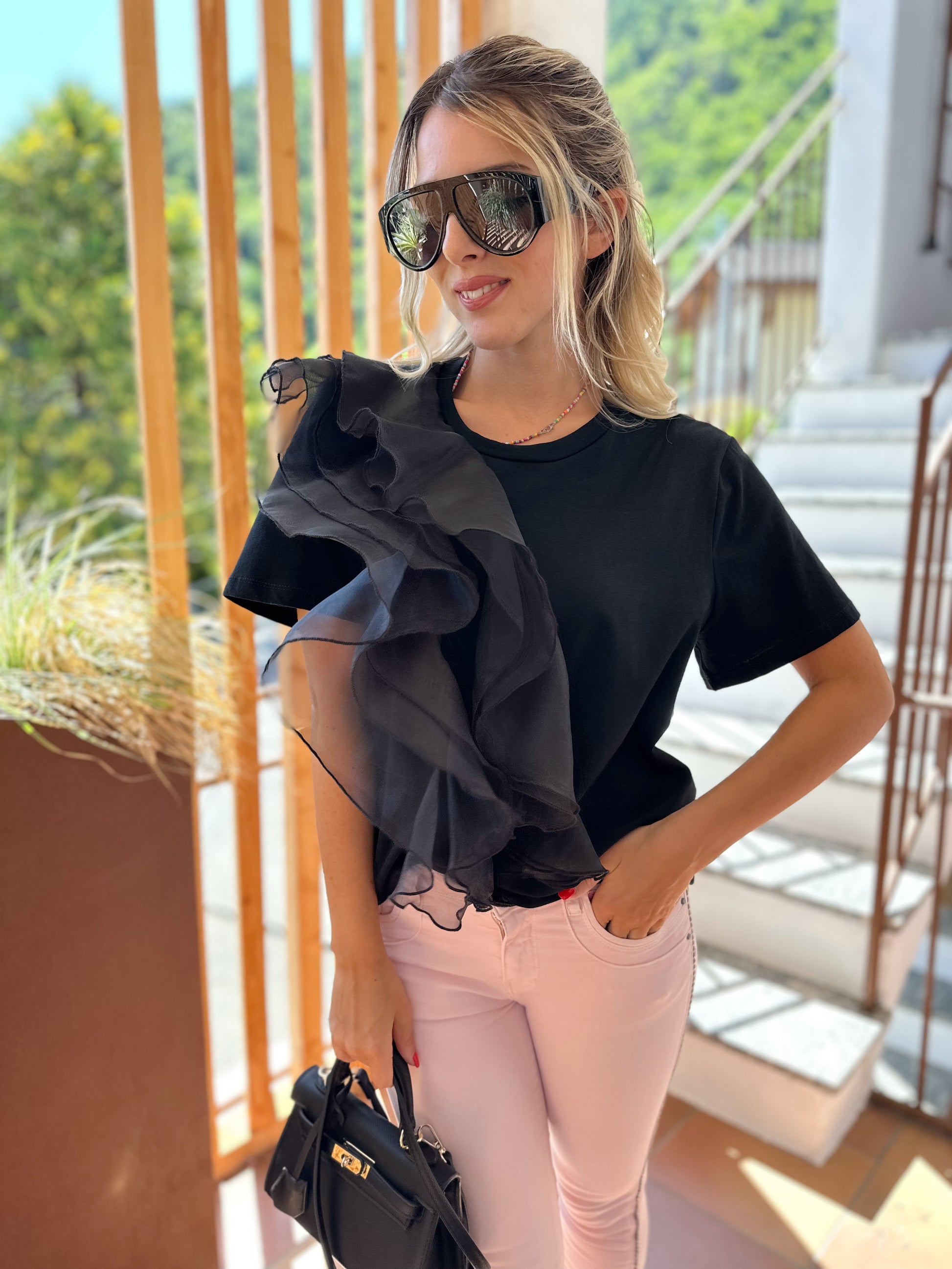 - Maglietta lunghezza regolare con organza nella parte davanti