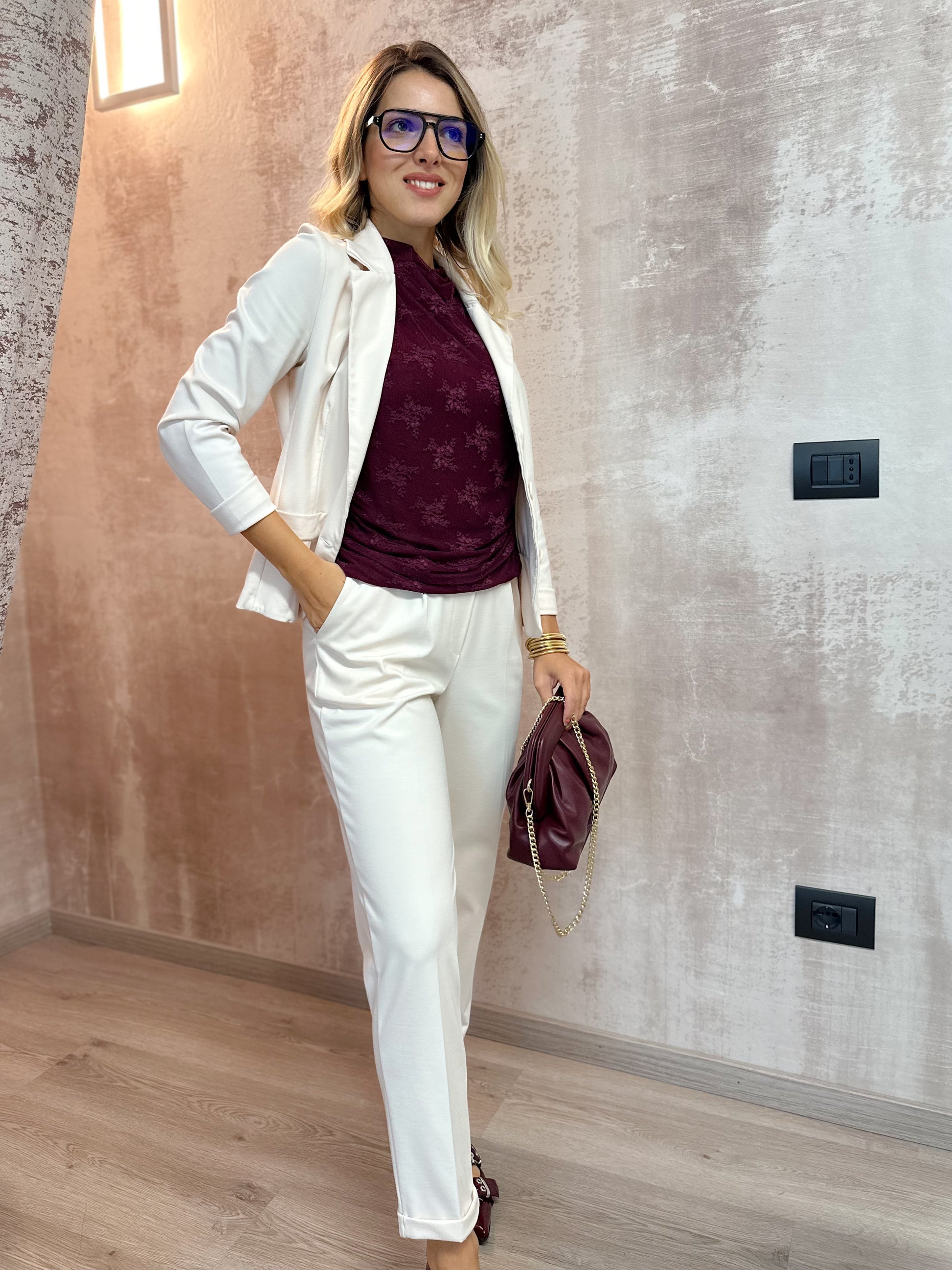 Top smanicato foderato con drappeggio davanti
