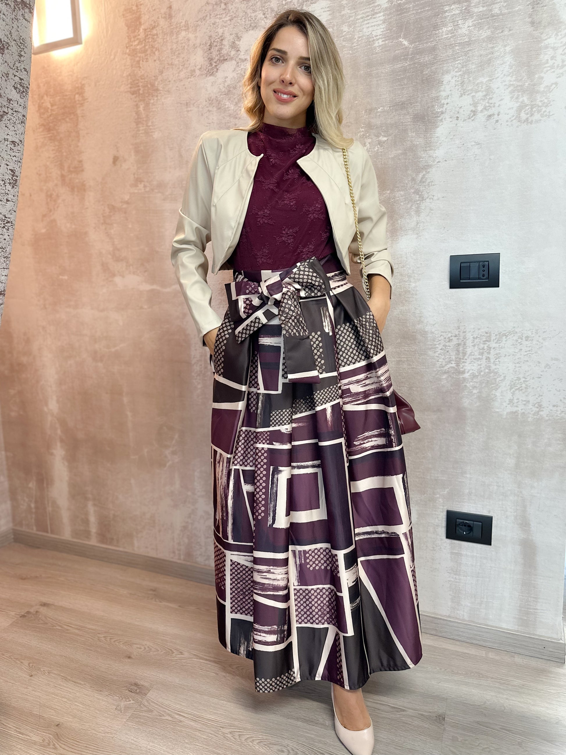 La modella è alta 1,65m e indossa la taglia unica